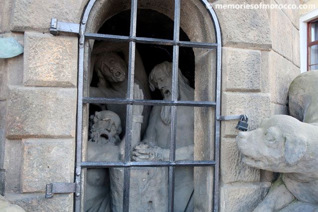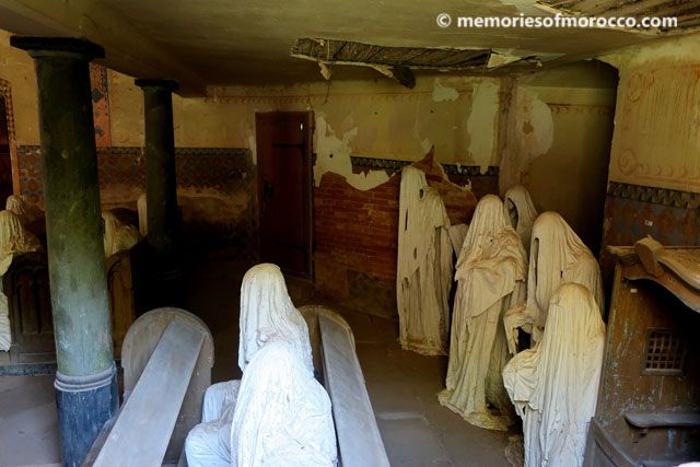 Thirty creepy ghosts now inhabit this decaying 14th-century church. There is actually a legend behind it, as follow. Many centuries ago, the church was a monastery where a monk named Anselm lived in celibacy. He was so handsome that he drove many Christian maidens crazy, celibate or not. A beautiful Jewess also fell in love with him, and Anselm returned her love. They used to meet secretly by the graveyard. The monk and the Jewess agreed to run away together, but an abbot overheard their conversation. Because the abbot didn't want to lose Anselm, he had him moved to another monastery. He would rather have Anselm attract Christian maidens to mass elsewhere than have him elope with a heretic. After that, the Jewess went crazy, wandering around the monastery during the night, banging on the doors and calling Anselm's name. The monks were afraid to open their doors because they didn't know what was happening. Then one night, the Jewess ran into the abbot, who found out about her nocturnal wanderings in the monastery and waited for her there. He was about to banish her from the monastery's premises, when she jumped on him and before he could take a breath to call for help, she strangled him. She then strangled 12 monks because she thought they had taken her lover. The thirteen statues in the church represent all the people she strangled. Since that time, her ghost is rumoured to appear at night around the church, ready to strangle anyone, still seeking answers about Anselm.