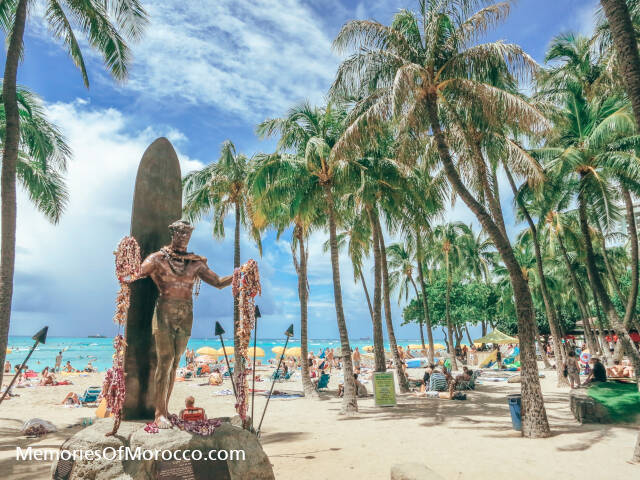 Hawaii is actually an archipelago of eight major islands. Oahu is by far the most popular island, especially for honeymoons. After landing at Honolulu airport, I was welcomed with a big "Aloha" sign, Aloha being hello in Hawaiian. Next to the entrance were women in leafy skirts and coconut bras, gently swaying their hips, just like in the Hollywood movies. It was the impetus to don a garish floral print shirt, and conform to the local stereotype.