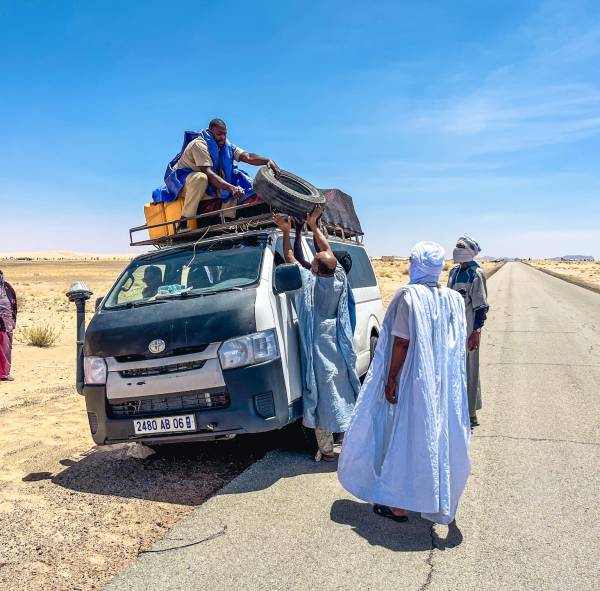 Most of the travel around Mauritania will be done by long distance minibuses. These can be found in all the towns with a few private companies offering routes, all with a similar price. A word of advice on the minibuses: try to sit at the front. It means that you will get more air from open windows than you would sitting at the back of the bus. After spending hours in a very cramped position at the back of one of these buses, the journey will not be the most comfortable. One important yet funny quirk is that when stating a price, most locals will still quote the old currency out of circulation since 2017, so instead of saying 20 they'll say 200 or 100 they'll say 1000 etc. make sure you are clear on the price in the new currency, both are called ouguiya to make it even confusing!