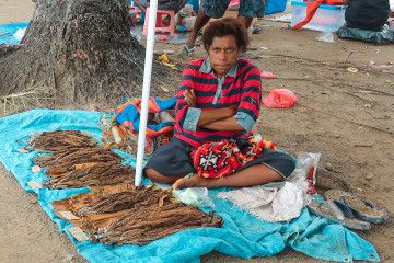 Located on a peninsula surrounded by white sandy beaches, Vanimo is a small outpost some 32 kilometres east of the border with Indonesia. It was my first point of call after crossing from Jayapura (there are PMVs at the border taking people to Vanimo). Like in all PNG towns, there are many Chinese owned supermarkets, the Chinese influence is quite marked in the goods for sale in the shops and the fabrics hanging in the market. "Why no local Papuan runs or owns any supermarket in PNG?" I enquired. "Because they do not have the knowledge nor the means" was the answer I commonly got. Sadly it's a malaise of the entire country, for whilst PNG is still way behind in terms of development, its crown jewels and riches are being plundered on the cheap by foreign powers: its rich minerals deposits (gold, copper, oil) mined by Australian/Chinese/Korean companies, its jungles logged by Malaysian companies who turn them into palm oil plantations, its coffee beans shipped out by the Koreans, its huge liquefied gas fields drilled by ExxonMobil. With seemingly little benefit to the wider uneducated poor population who rely on a small scale agriculture production for survival. All the while the Papuans are encouraged to attend one of the countless churches where a donation of 10% of income is standard. No wonder almost everyone is addicted to chewing betel nuts and the high it gives, providing a temporary relief.
