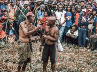 The island of New Guinea is the second largest in the world after Greenland. It's a mountainous, sparsely populated tropical landmass divided between two countries: the independent nation of Papua New Guinea in the east, and Indonesian provinces in the west. The island split is an artefact of colonial history. Pre-colonial times, the island was not a nation state but populated by tribal clans. During colonial times, at the end of the 19th century, the island was split between three powers: the Dutch held the western half, the British the south-eastern quarter and the Germans held the north-eastern quarter. During WW1 the Germans lost their part of the island to the British. The British half later became the independent country of Papua New Guinea. Meanwhile the Dutch half became part of the independent country of Indonesia when that colony fought off Dutch rule in the 1940s. The two halves are not likely to unite anytime soon because the Indonesians are extremely insistent on their claim to West Papua and PNG wants to maintain a peaceful and productive relationship with Indonesia.