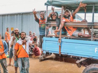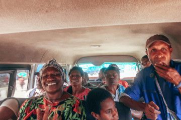 The public bus from Goroka to Madang was supposed to depart at 8AM, but only leaves whenever it's full (11AM in my case). Some passengers didn't want the burden of carrying their luggage to the main bus stop, so they come and make the bus go all the way to their home to pick up their baggage and/or their relatives. The journey was meant to take 6 hours but it took much longer because of the countless stops: stop for food, stop for bathroom, stop to drop people off at the river, stop to pick people up from the river, stop for the policewoman to buy a new battery, stop to buy betel nuts, etc. The bus goes along the "Goroka highway". Highway is misnomer, even describing it as a road is very generous because of how neglected it is. There were so many potholes, some flooded with rain water, a very long free massage is probably the best way to describe the bus ride. However the breath taking scenery along the way more than makes up for it. Just before nightfall, we came across some lorries stuck deep in the mud, blocking the entire road. Just when I thought we would end up doing some impromptu night camping under the stars, the locals pooled together to clear the road and physically pushed the buses through the muddy patch. We arrived in Madang around 9PM, there are no taxis and almost no public transport at night, so the bus driver actually drops off each passenger exactly where they want in town.